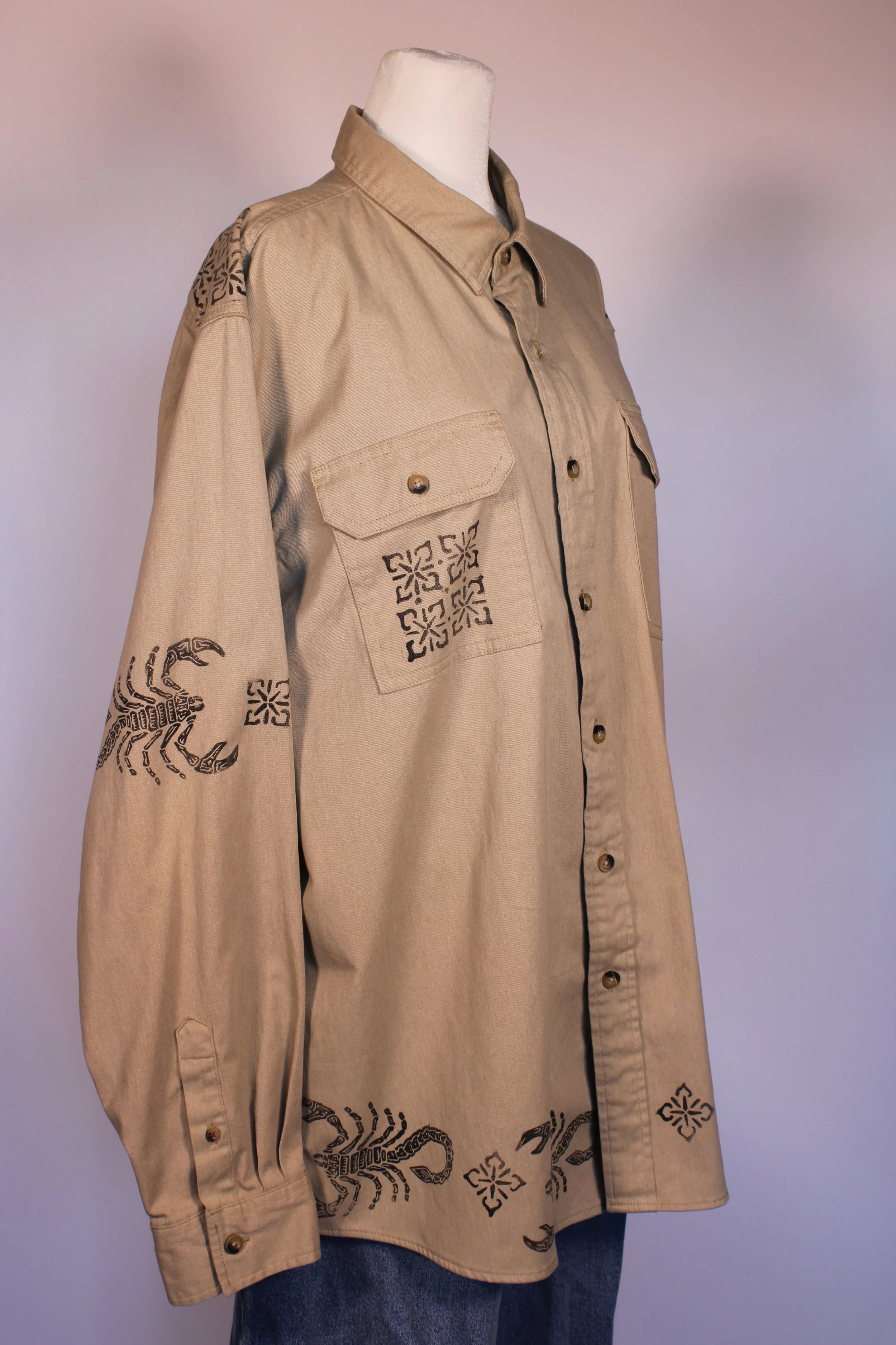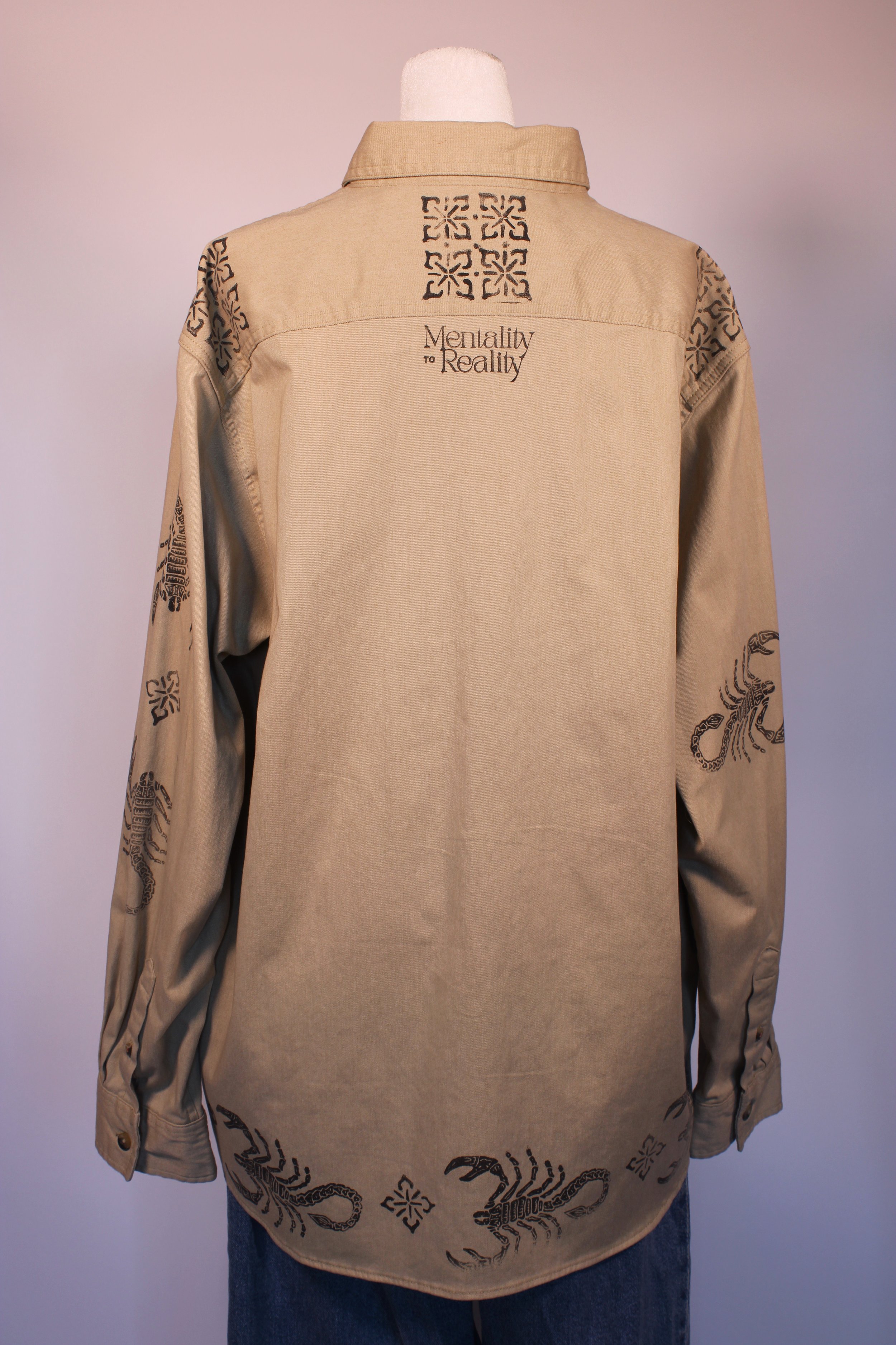 Hand-printed with eco-friendly inks on reclaimed fabric, this soft hoodie blends comfort, sustainability, and craftsmanship. Perfect for layering on cool days or wearing as a statement piece.